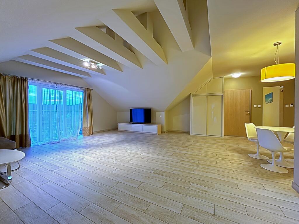 Na tomto krásném místě vám nabízíme apartmán o rozloze 79,97 m2 sestávající z pokoje, předsíně a koupelny. Z obývacího pokoje je vstup na balkón o rozloze 9,64 m2.